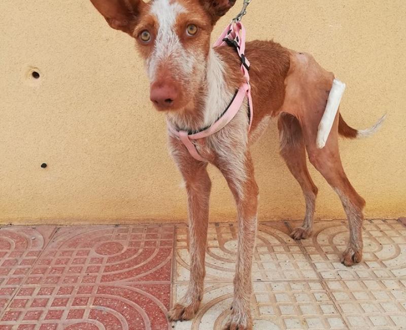 03 de Noviembre de 2018: Muchos estáis preguntando por la pequeña CASILDA, la podenquilla atropellada. Esta recuperándose perfectamente gracias a Clínica Veterinaria Algaida. Esperemos verla correr muy pronto.