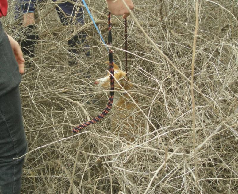 Chabi se refugio en un matorral, de donde conseguimos rodearle y sacarle.