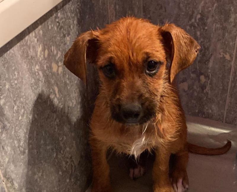 Estaba muy débil el pobre, infectado de pulgas y garrapatas. Ya ha sido desparasitado, come muy bien, a priori es un perro sano y súper agradecido.