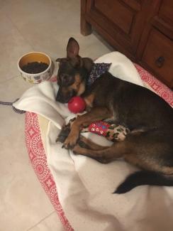05 Febrero 2019: Recibimos noticias de Eulalia ahora Lily, su nueva familia dice que es el perro mejor educado que han tenido. Mirar como disfruta de su comoda cama.