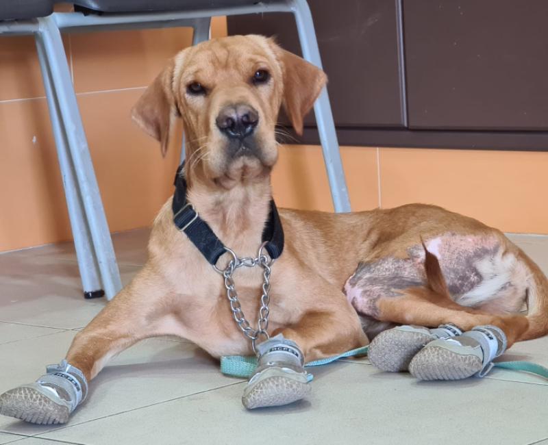 24 Agosto de 2020: Mirar qué super tenis le hemos comprado a Tano ya que sus patitas no necesitan esas molestas vendas. ¿A que le quedan bien?.