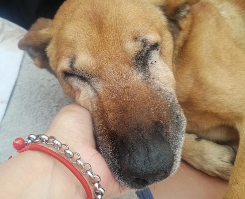 De allí directo al veterinario, análisis, pruebas,…Aparte de la anemia que tiene, tiene algo tocado el hígado, muchos años con una atención nefasta. No ve, pero come muy bien así que confiamos en que al menos recupere fuerzas rápidamente.