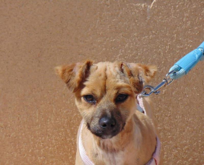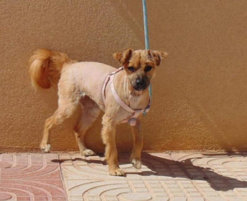 Es pequeña, pesa unos 6 kilos. Es súper cariñosa y alegre!!!.