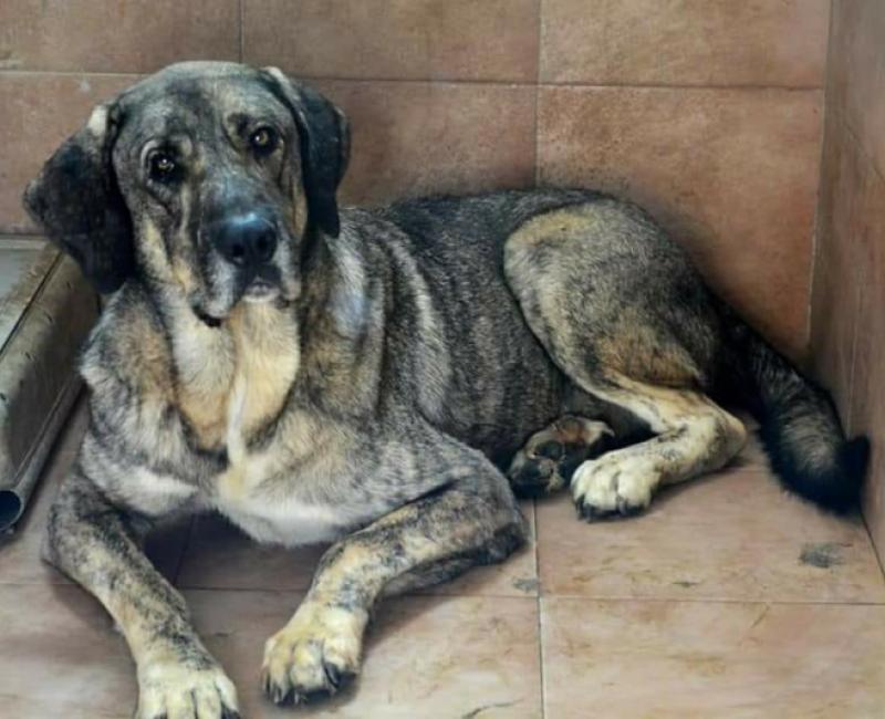 Leto llegó a la perrera en unas condiciones lamentables, nos cuentan que su compañera habia muerto de hambre y a el le faltaba poco...