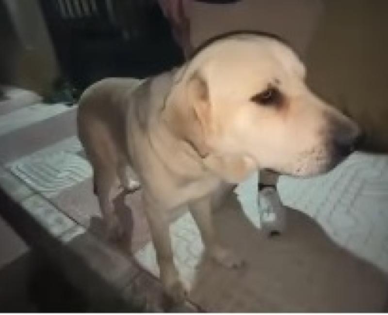 Es un cruce de mastín, carece de chip, ya ha pasado por la veterinaria, la cual cree que ha podido ser un golpe de coche al ser las lesiones en el mismo lado.