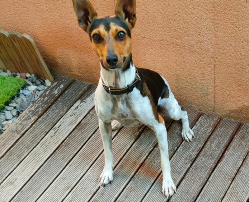 Es una perra buenísima, tímida y muy activa.