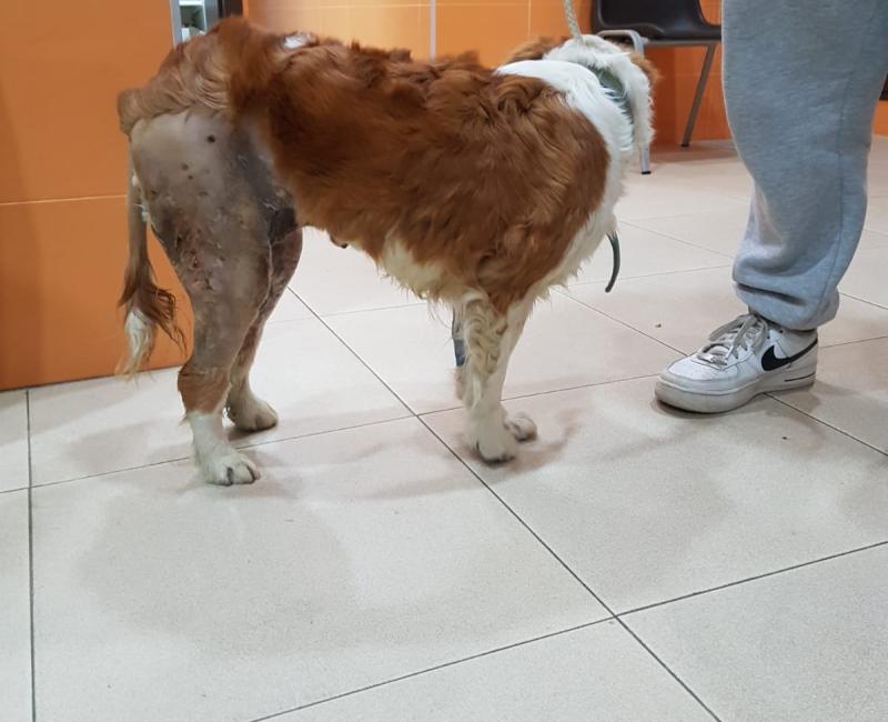 El centro zoosanitario recibía una llamada sobre un perro que había sido atacado por un perro mucho más grande y estaba muy malherido.