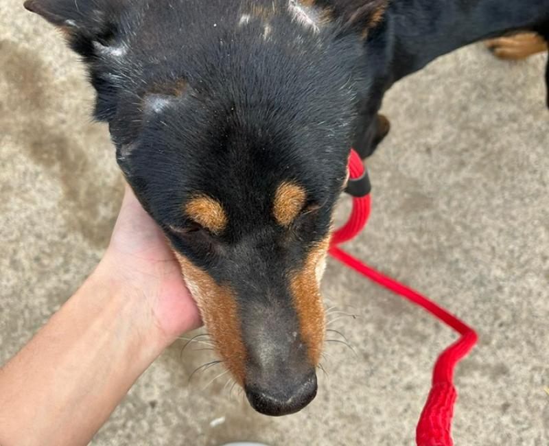 Miro fue encontrado en medio de la carretera con heridas en la cabeza. Tiene toda la pinta de haber sido atacado por algún perro, quizás intentando alimentarse.