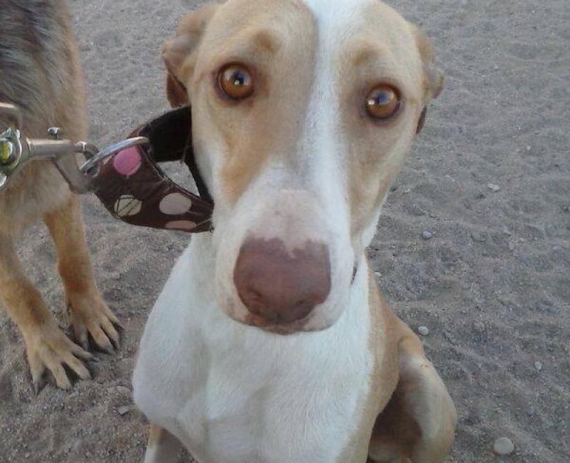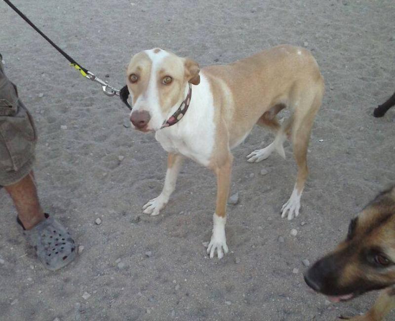 Se encontraba en la perrera de Almería, temblando en la esquina más alejada de la puerta. En sus ojos se podía ver el pánico a los humanos.
