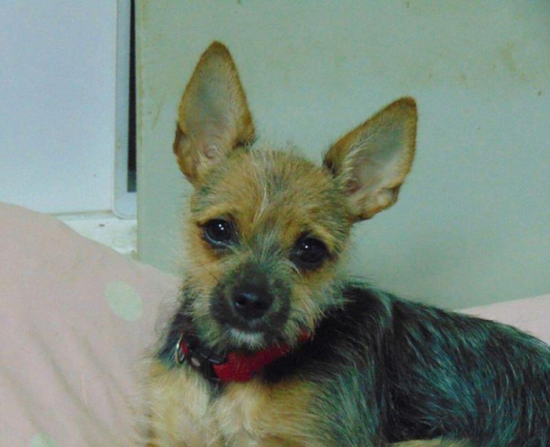Es muy buena y cariñosa, pesa 2 kilos, es cruzada con Yorkshire Terrier. Se lleva bien con perros y gatos.