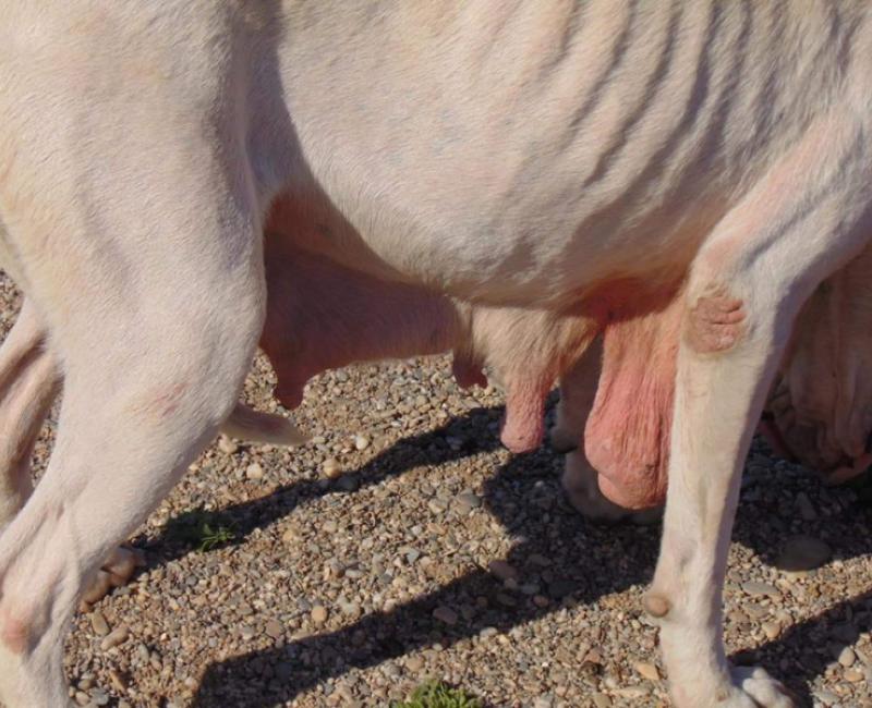 CON LAS MAMAS DESTROZADAS POR UTILIZARLA PARA CRIAR.