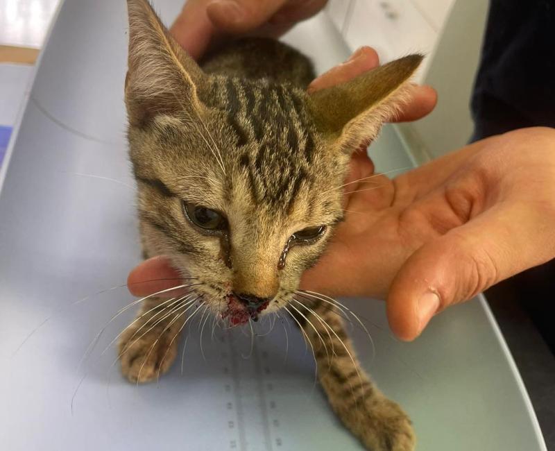 Días después está recuperado casi al 100%, es un gatito muy bueno y cariñoso que convive con más gatos y con perros.