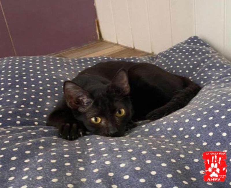 Esta hermosa gatita empezó a seguir a unos niños por la acera y quería también cruzar la calle con ellos. Preguntaron por la zona y dijeron que vivía en una obra y que se iba con cualquiera que pasara para pedir caricias, ante el riesgo de que pueda ser atropellada o que caiga en malas manos.