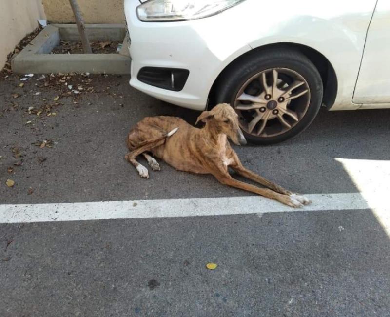Temblando, paralizada por la debilidad y apagándose poco a poco. Así estaba esta preciosa galga, a la que hemos llamado Rosario, en el parking de un supermercado en Vicar. Presenta una leve cojera en una de sus patas traseras, seguramente alguna fractura antigua, lo que hace que ya no sea "útil".