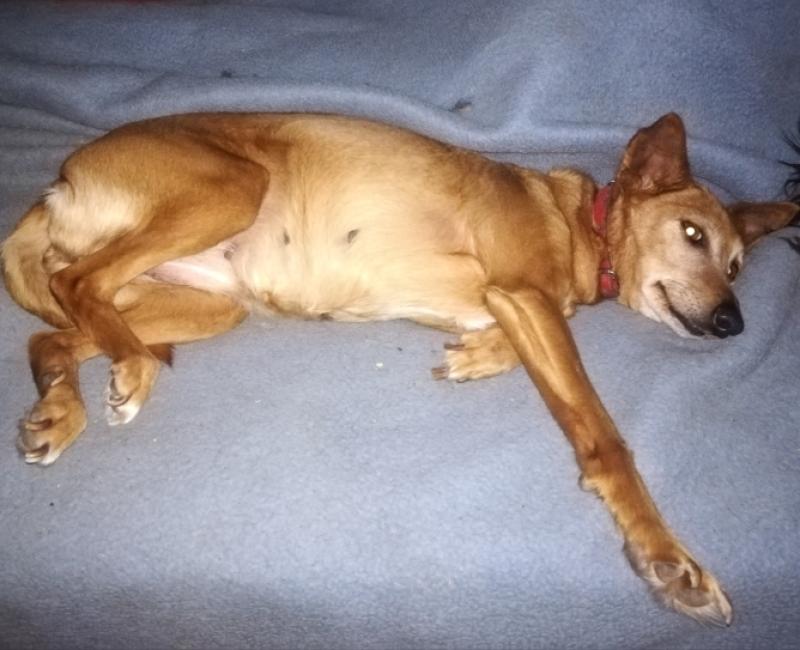 TINA es la podenquita del indigente Alexander, que falleció hace meses dejando a su perrita sola. Un grupo de personas llevan meses intentado ganarse su confianza y por fin HA SIDO RESCATADA!!!!.