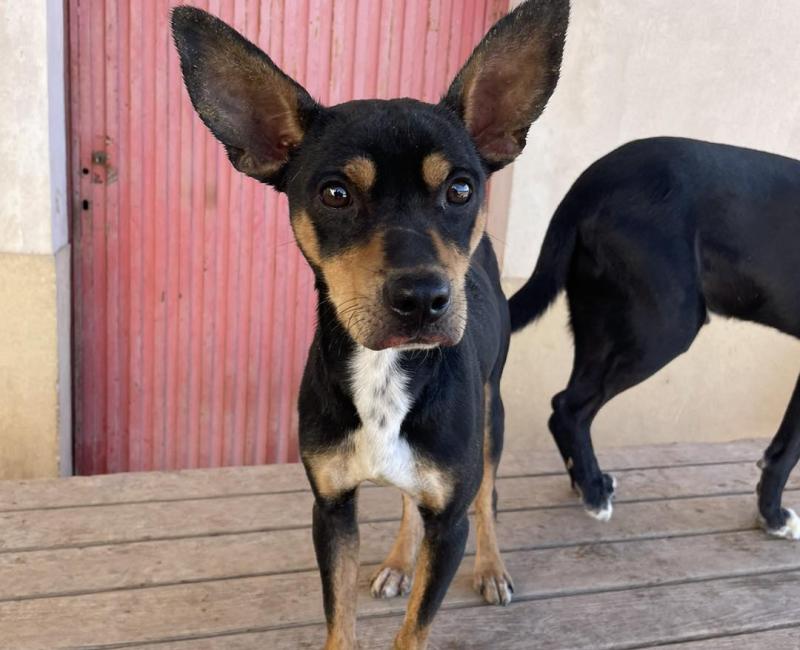 Esta preciosidad a la que hemos llamado TORETTO es un perrito joven, alegre, sociable con perros y gatos.