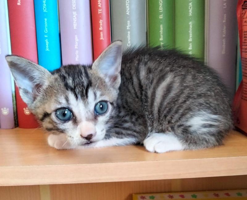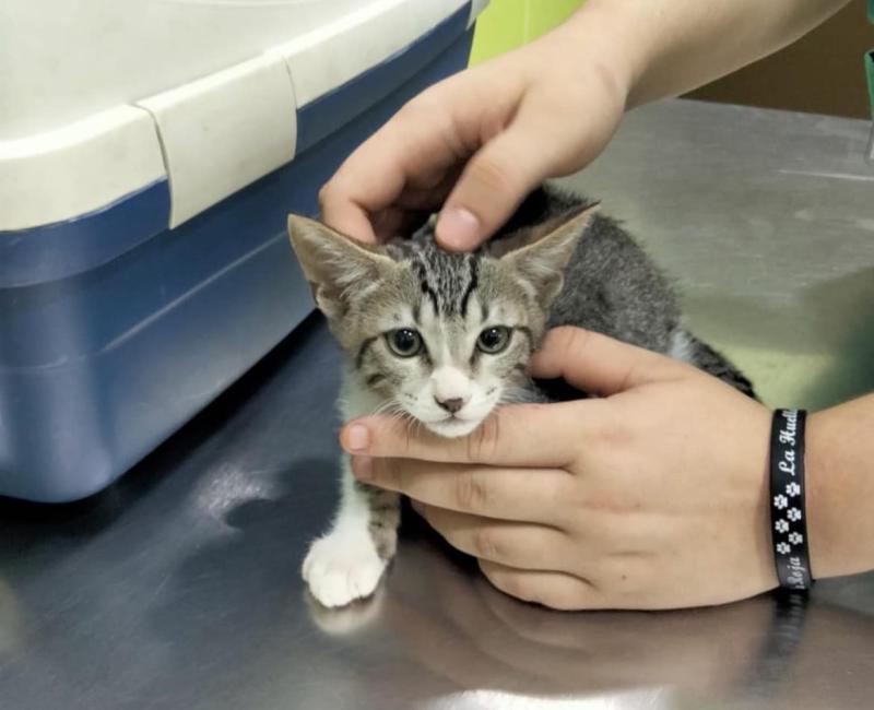 Pensamos que fue abandonado allí tras quitárselo directamente a su madre ya que el animal olía a casa y el pobre aún no sabía comer ni beber solo. Quiere decir que seguramente habría estado con su mamá hasta ese momento.