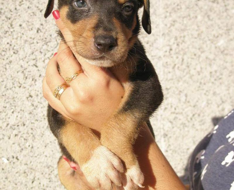 Su mami Kinder se encontraba abandonada, maltratada y a punto de dar a luz en un pueblo de Almería, decidimos salvarla y tras pocos días dio a luz a 10 preciosos cachorros.